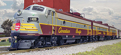 This is the GMD FP9A with LokSound & DCC True North Canadian Pacific #1405 (Maroon, Gray, Script) HO Scale Diesel Locomotive by Rapido Trains.